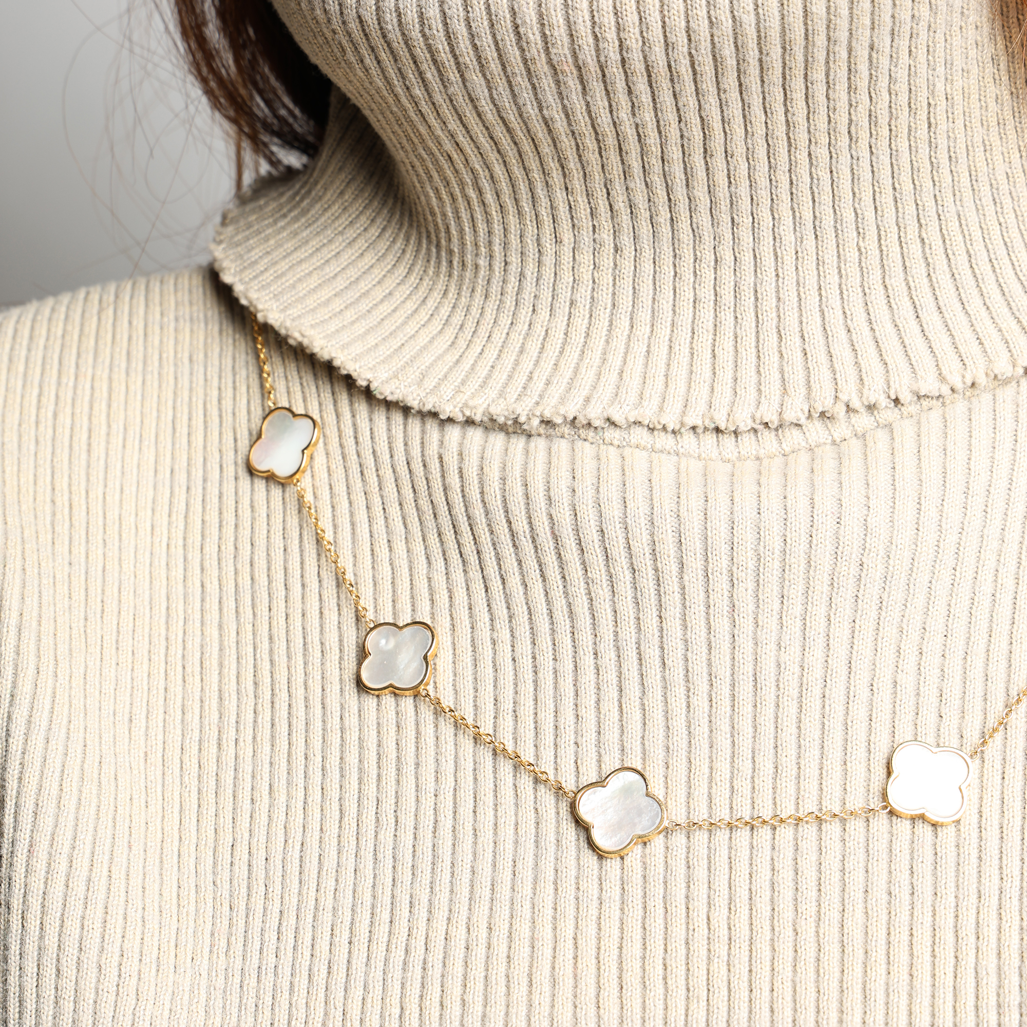 - Alhambra Models: Alhambra models with the four-leaf clover design, especially longer models with larger pendants, are very suitable for wearing over clothes. These models are produced in various colors and materials such as mother-of-pearl, precious stones, etc.