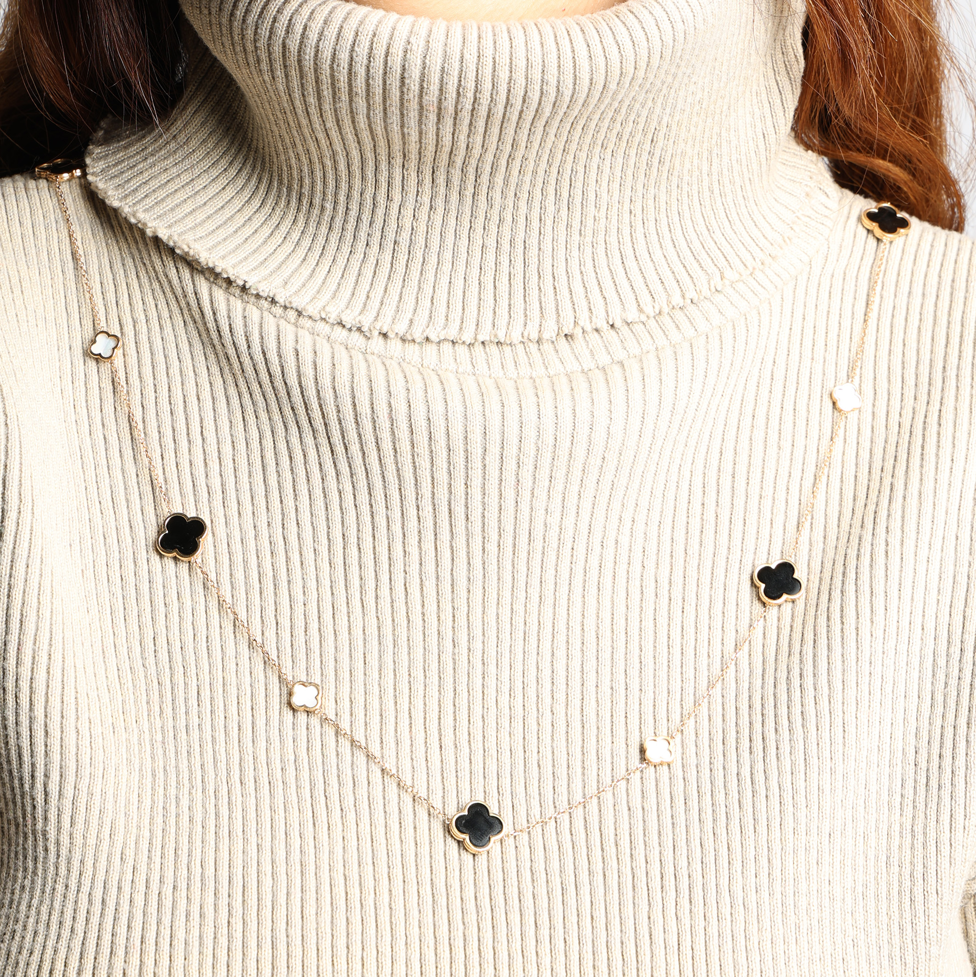 • Alhambra Models: Alhambra models with the four-leaf clover design, especially longer models with larger pendants, are very suitable for wearing over clothes. These models are produced in various colors and materials such as mother-of-pearl, precious stones, etc.