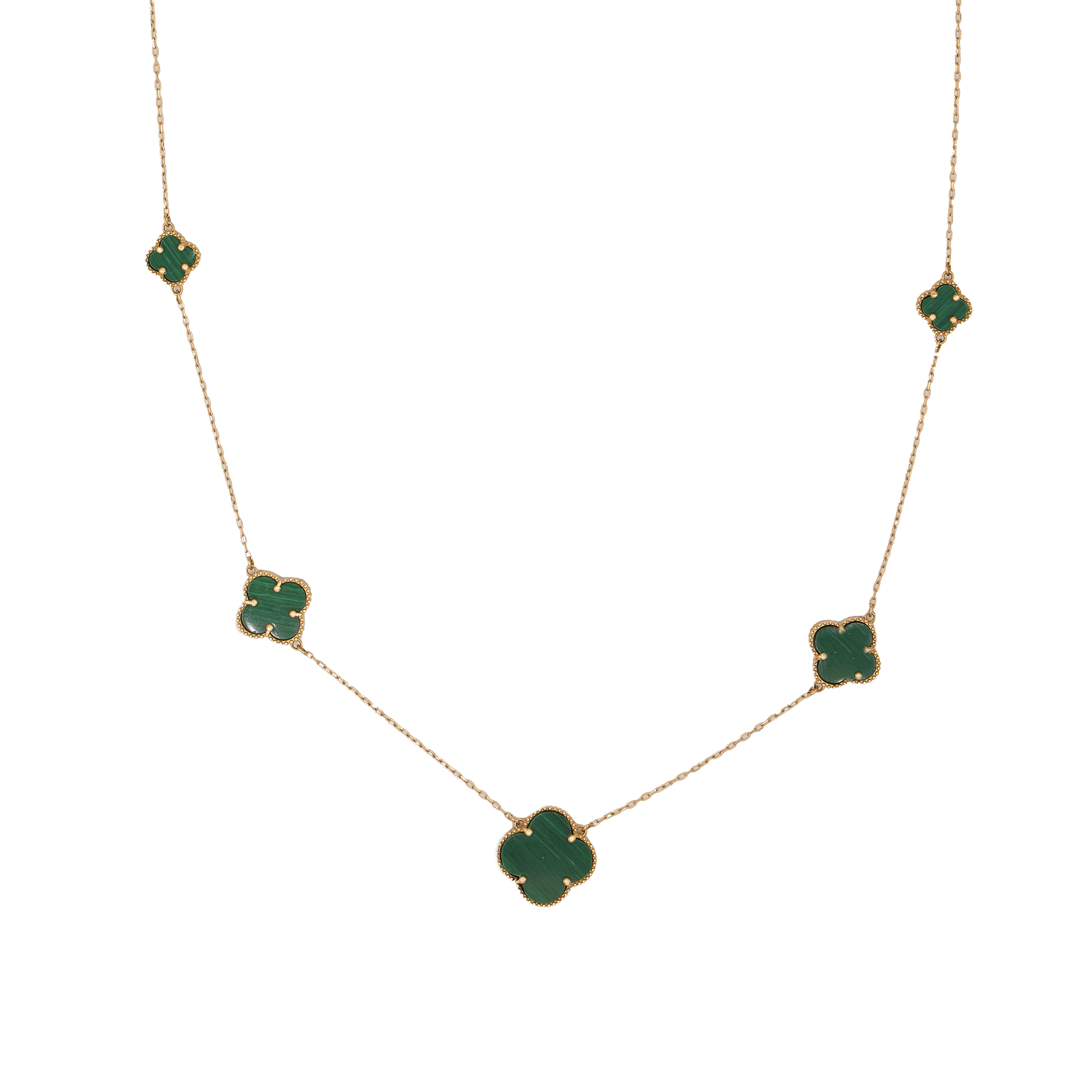 - Price: The price of a green Van Cleef & Arpels necklace depends on the type of green stone or material, the material and carat of the gold, the size, and the craftsmanship. Compare prices in different stores before buying.